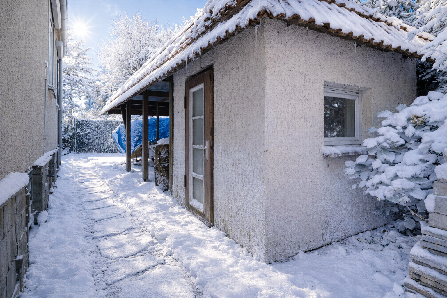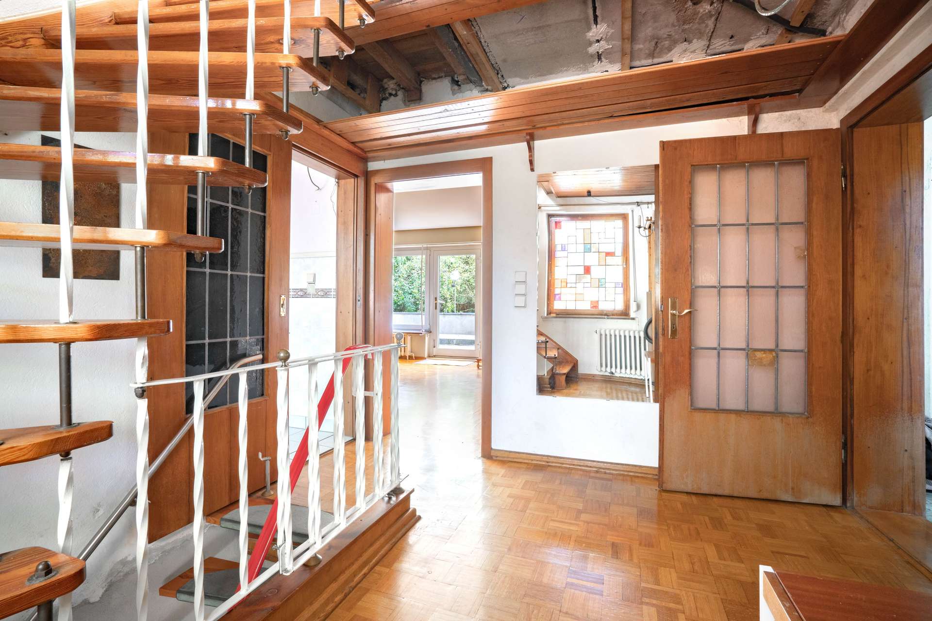 Die Ausstattung des sanierungsbedürftigen Hauses ist solide: großteils Aluminiumfenster, eine gewissenhaft ausgeführte Bauweise sowie eine vorhandene statische Ertüchtigung, die einen Ausbau im Obergeschoss problemlos ermöglicht. So eröffnet die Immobilie viel Potenzial für individuelle Modernisierungen und zukünftige Wohnideen.
